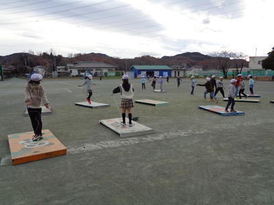 子供たちは、休み時間になるとジャンプ台に向かい新しい技に挑戦しています。
