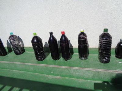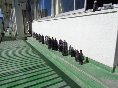 ペットボトルを黒く塗り、ひなたに出しておきます。