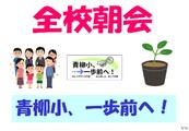 今年度最後の全校朝会のテーマは、「青柳小、一歩前へ!」です。