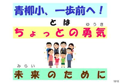 テーマは「青柳小、一歩前へ!」です。