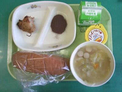 今日の給食は、みんな大好き「ココアあげパン」でした!
