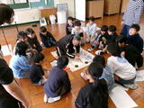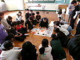 外部指導者の方をお招きし、3年生から6年生が書きぞめ指導を受けました。筆の扱い方、書くときは縦画でも横画でも斜め45度に筆を入れること、線の太さは筆先の向きを変えて調節し、力は一定に保つこと、縦画と横画の交わり方など各学年ごとに丁寧に教えていただきました。