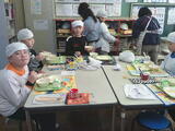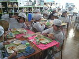 本日、3学期初めての給食がありました。 久しぶりの給食とあって、教室では朝から子どもたちが給食だよりの周りに集まっていました! 「今日の給食は何かな?」と、うれしそうな声がたくさん聞こえてきました。 今日の献立はこちらです。 ・しゃくし菜ごはん・牛乳・沢煮椀(さわにわん)・かぼちゃコロッケ・フルーツのゼリー和え しゃくし菜ごはんは、ほんのりとした塩味がごはんのおいしさを引き立てていました。沢煮椀には細切りの野菜がたっぷり入り、体が温まるやさしい味わいでした。 かぼちゃコロッケの甘さも食欲をそそります!ブログ担当者はこれがお気に入りの一つです! さっぱりとしたフルーツのゼリー和えも、子どもたちに大人気でした。 「久しぶりの給食で、全部おいしかったです」「3学期も給食が毎日楽しみです」 「ゼリーをおかわりしました!」と、子どもたち。給食の時間を心待ちにしていた様子が伝わってきました。 給食センターの皆様、いつもおいしい給食をありがとうございます。3学期も、どうぞよろしくお願いします。