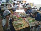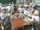 3学期最初の給食、笑顔いっぱいの時間が戻ってきました! 投稿: 管理者1 (16:44) 本日、3学期初めての給食がありました。 久しぶりの給食とあって、教室では朝から子どもたちが給食だよりの周りに集まっていました! 「今日の給食は何かな?」と、うれしそうな声がたくさん聞こえてきました。 今日の献立はこちらです。 ・しゃくし菜ごはん・牛乳・沢煮椀(さわにわん)・かぼちゃコロッケ・フルーツのゼリー和え しゃくし菜ごはんは、ほんのりとした塩味がごはんのおいしさを引き立てていました。沢煮椀には細切りの野菜がたっぷり入り、体が温まるやさしい味わいでした。 かぼちゃコロッケの甘さも食欲をそそります!ブログ担当者はこれがお気に入りの一つです! さっぱりとしたフルーツのゼリー和えも、子どもたちに大人気でした。 「久しぶりの給食で、全部おいしかったです」「3学期も給食が毎日楽しみです」 「ゼリーをおかわりしました!」と、子どもたち。給食の時間を心待ちにしていた様子が伝わってきました。 給食センターの皆様、いつもおいしい給食をありがとうございます。3学期も、どうぞよろしくお願いします。 Tweet -