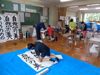 外部指導者の書道の先生にお越しいただき、夏休みの自由応募に取り組みました!