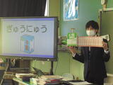 2年生では、「ぎゅうにゅうにはどんなひみつがあるのかな」という学習です。毎日の給食に必ず出る牛乳には、どんな栄養が含まれているのか、体にどんなよいことがあるのかを学びました。他の飲み物と比べながら、道具を使って栄養の量を見てみると、その多さにみんなびっくり。「すごい量だ!」という声が教室に広がりました。